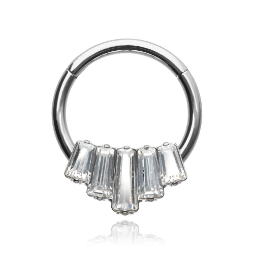 Tytanowy kolczyk kółko clicker z cyrkoniami - srebrny - TK-012