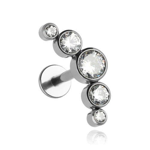 Tytanowy kolczyk labret cluster z białymi cyrkoniami