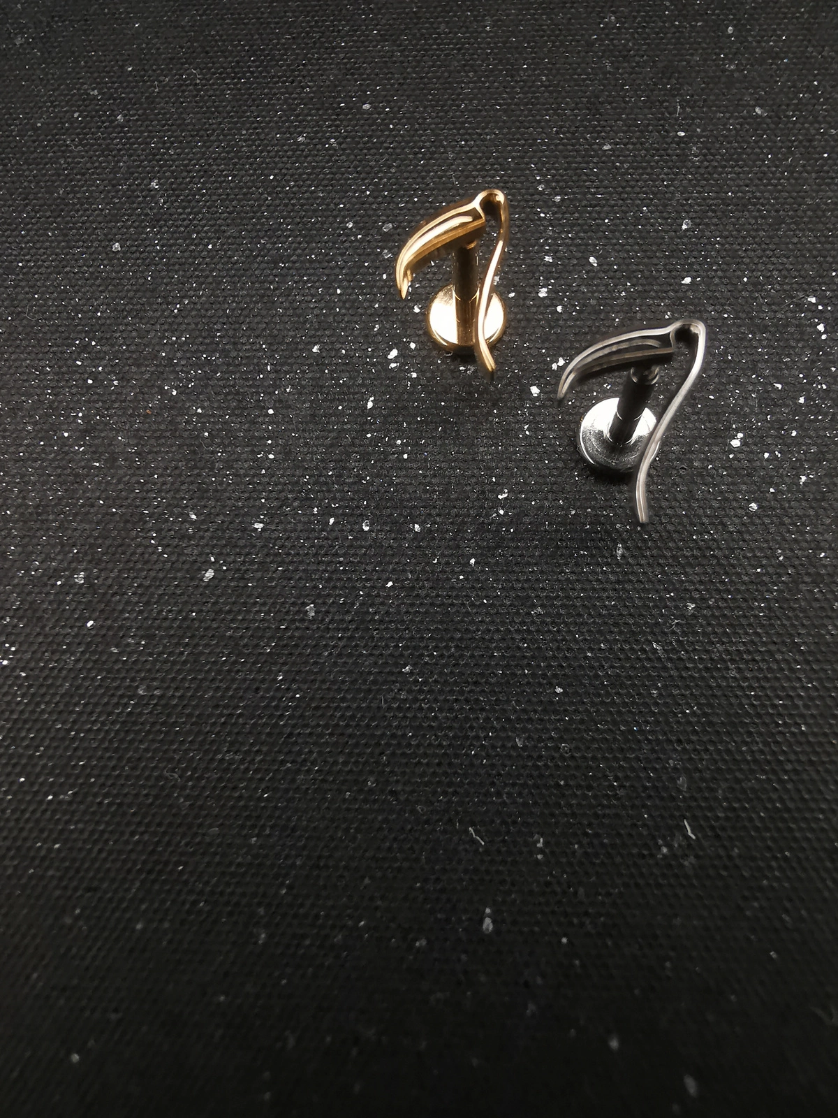 Tytanowy kolczyk labret kosa - złoty - TGW-168