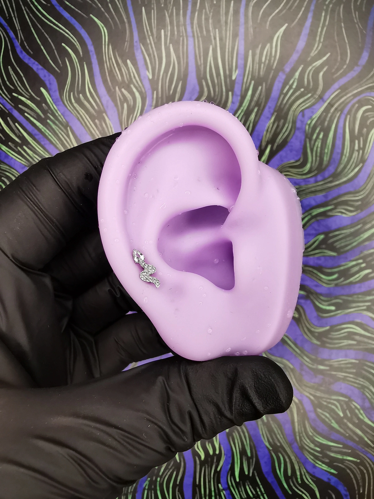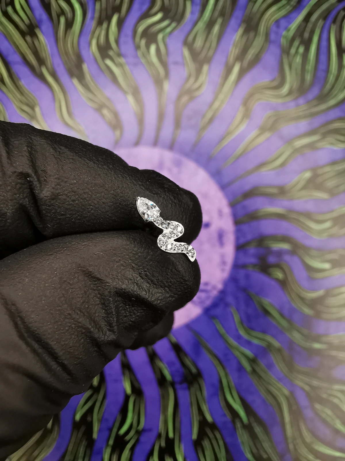 Tytanowy kolczyk labret srebrny wąż z białymi cyrkoniami - TGW-113 | CrazyNeedles.pl