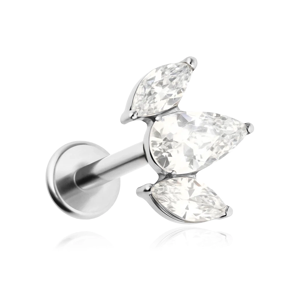 Tytanowy kolczyk labret z białymi cyrkoniami - srebrny