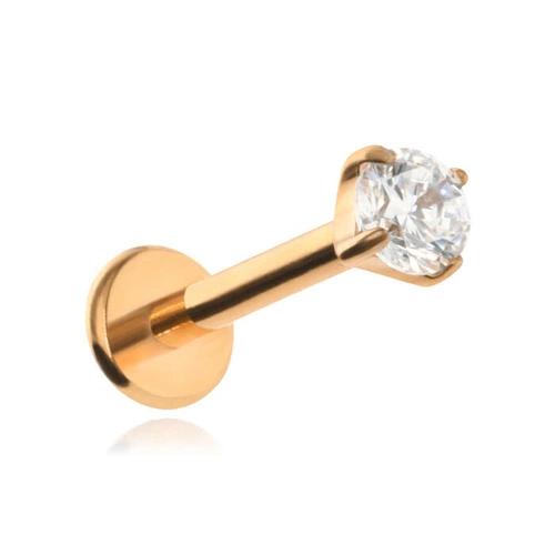 Tytanowy kolczyk labret złoty z białą cyrkonią