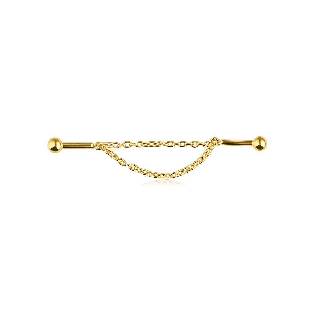 Tytanowy kolczyk z łańcuszkiem - złoty - TSZ-009